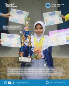 Selain bidang akademik formal, siswa SMP Islam Al Akhyar juga sukses meraih beberapa juara dalam ajang Olimpiade Aritmatika Sempoa. Kompetisi ini menuntut ketelitian tinggi, konsentrasi kuat, serta kemampuan berhitung cepat yang tidak dimiliki oleh setiap anak. Prestasi ini membuktikan bahwa siswa-siswi mampu mengembangkan kemampuan numerik melalui berbagai metode pembelajaran yang menarik dan efektif.