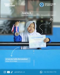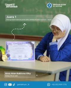 SMP Islam Al Akhyar kembali menorehkan prestasi membanggakan melalui berbagai capaian akademik dan non-akademik di tingkat kota hingga nasional. Para siswa-siswi menunjukkan dedikasi dan usaha maksimal dalam setiap kompetisi yang diikuti, sehingga mampu membawa nama baik sekolah dan membuktikan kualitas pendidikan yang diberikan. Prestasi ini menjadi bukti bahwa karakter unggul, kerja keras, serta dukungan dari guru dan orang tua merupakan kombinasi kuat dalam membentuk generasi berprestasi.