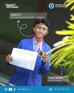 SMP Islam Al Akhyar berkomitmen terus mendukung tumbuhnya potensi siswa baik dalam akademik maupun non-akademik. Rangkaian prestasi yang diraih tahun ini menjadi bukti nyata kualitas pembinaan sekolah dalam mencetak generasi yang unggul, berkarakter, dan berprestasi. Semoga pencapaian ini dapat menginspirasi siswa-siswi lainnya untuk terus berusaha, berlatih, dan memberikan yang terbaik di masa mendatang.